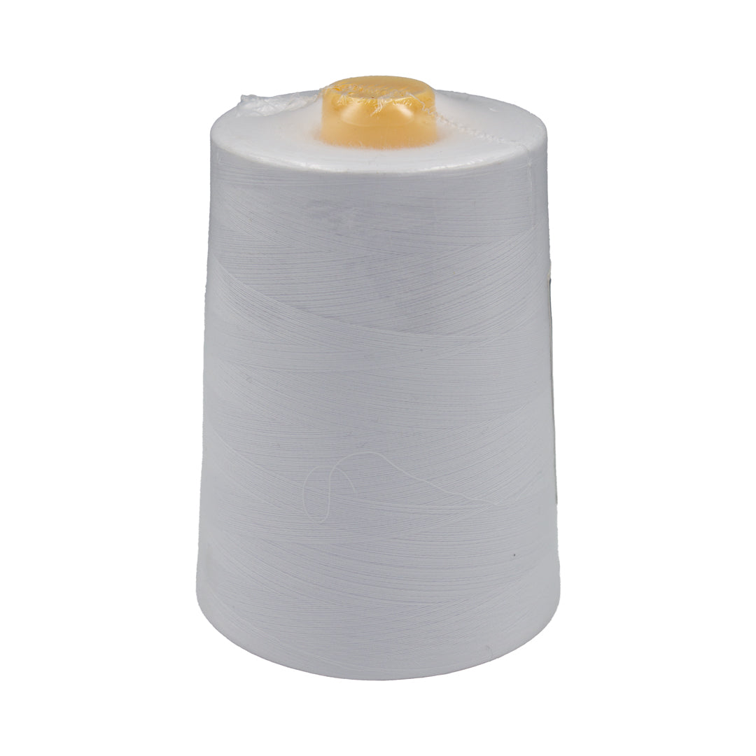 This thread is made from 100% Spun Polyester,ticket 120. Each cone has 10,000 yards of thread. Available in white and black.