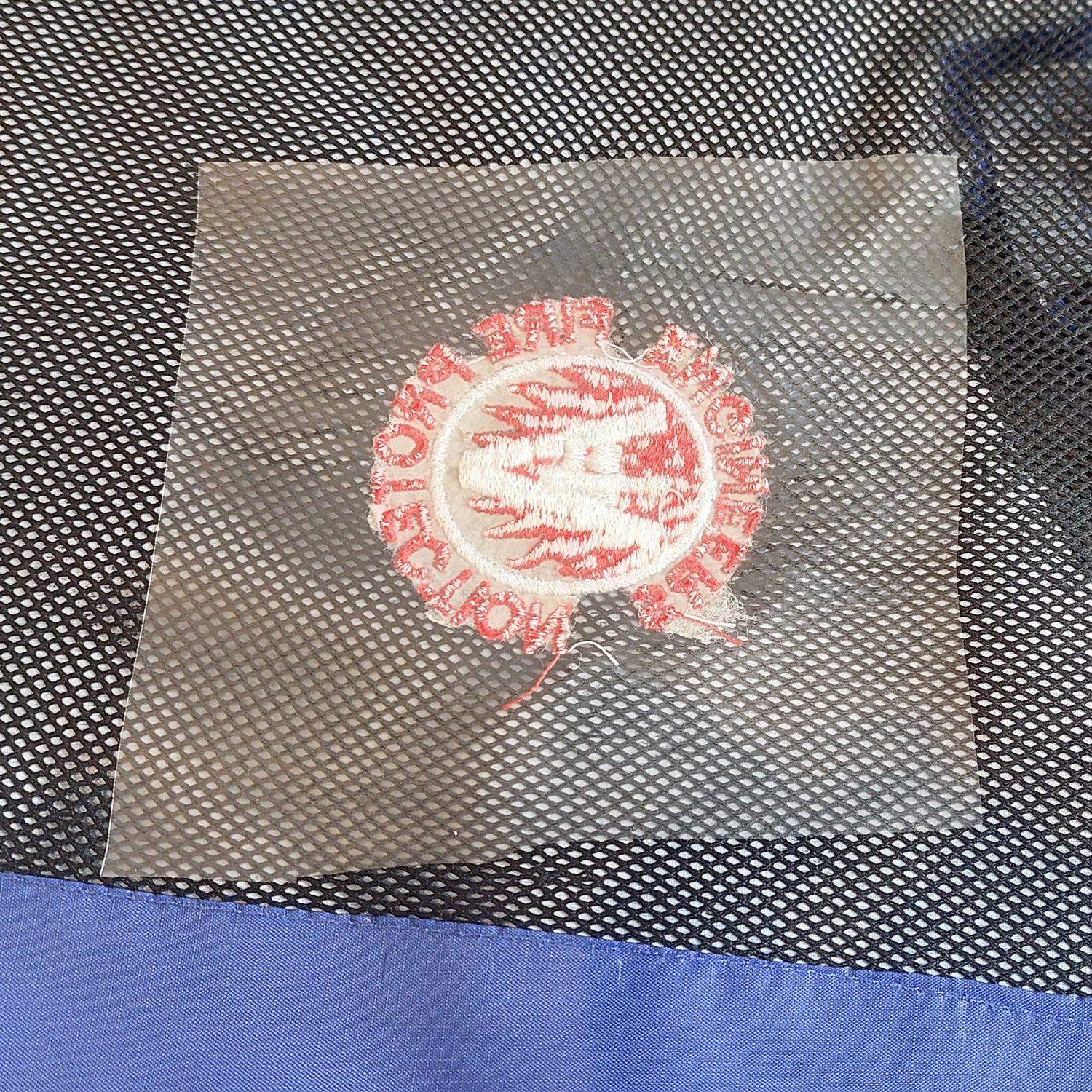 The shiny side is placed over the embroidery and the white side is facing the heatpress.